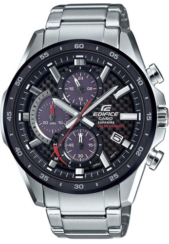 Edifice. Питание от солнечной энергии, индикатор низкого заряда батареи. Светонакопительное покрытие необрит продолжает светиться в темноте даже после непродолжительного пребывания на свету. 12-ти и 24-х часовой формат времени. Часы-хронограф с секундомером с точностью показаний 1с и временем измерения 30мин. Заводная головка с защитой. Задняя крышка с винтовым фиксатором. Раскладывающаяся застежка, расстегиваемая одним касанием.