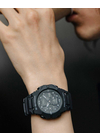 Эта стильная новинка от Casio подарят вам массу положительных эмоций, а знаменитая надежность не подведет в трудную минуту. G-Shock. Новая модель мужских часов от Casio. Модель отличается уникальной конструкцией с двумя отдельными безелями, которые соединяются в положениях «9 часов» и «3 часа» Структура Carbon Core Guard. Противоударный пластиковый корпус с карбоновыми волокнами более прочный и, в то же время, более легкий. Этот же материал защищает внутренний модуль от повреждений и деформаций при ударах. Двойная подcветка: циферблат и ЖК-дисплеи подсвечиваются светодиодом, благодаря наличию функции задержки, после отпускания кнопки освещение горит еще несколько секунд. Настраиваемое послесвечение 1,5 или 3сек. Цвет подсветки: белый. Необритовое светонакопительное покрытие обеспечивает длительное послесвечение в темноте даже после кратковременного нахождения на свету. 12-ти и 24-х часовой формат времени. Секундомер с двумя точностями показаний: 1/100с (до 1ч) и 1с (после 1ч) и временем измерения 24ч. SPLIT-хронограф. Таймер обратного отсчета от 1с до 24ч. Мировое время – 38 городов (38 часовых поясов), всемирное координированное время (UTC). Функция включения/отключения летнего времени. Переключение между домашним и мировым временем. Беспроводная технология Bluetooth® со сверхнизким потреблением энергии для синхронизации со смартфоном. При подключении к смартфону часы автоматически корректируют текущее время, в том числе переход на зимнее/летнее время, копируют настройки мирового времени более чем для 300 городов. Функции поиска телефона, отключения/включения звука и перемещения стрелок для беспрепятственного просмотра информации на цифровых дисплеях. Отображение дней недели на шести языках. Смена отображения даты/месяца. Стальная задняя крышка крепится на 4-х винтах. Водонепроницаемость 20 Бар в соответствии с ISO 2281. Ремешок из полимерного материала с классической застежкой.