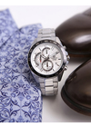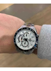 Edifice. Часы-хронограф с секундомером. Секундомер с точностью показаний 1/10с и временем измерения 1ч. Циферблат с метками в виде штрихов. Окошко даты находится в положении 4 часа.