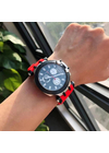 Оригинальный аксессуар выполнен в спортивном стиле, характерно наличие крупных деталей, ярко-красная расцветка силиконового ремешка, отсылка к деталям гоночных мотоциклов. Задняя крышка корпуса сделана в виде колеса, безель напоминает тормозную колодку. Наручные часы оснащены кварцевым механизмом швейцарского производства ETA G10.212. Хронограф позволяет измерять показатели с особой точностью. Чёрное PVD-покрытие корпуса. Сапфировое стекло. Водостойкость при давлении 10 бар. Секундомер, индикация даты. Люминесцентная подсветка. Габариты: 43 x 44,5 x 12,7 мм.