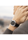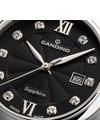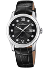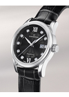 Элегантные casual-часы на изящное запястье. Коллекция Lady Elegance Date. Кварцевый механизм Ronda Harley 785. Черный циферблат с гильоше стиля «Ячменное зерно», 10 цирконов в роли часовых меток, накладные римские цифры VI и XII. Апертура даты на «3 часах». 33-мм полированный корпус из нержавеющей стали. Черный кожаный ремешок с узором «под аллигатора». «Маркировка Swiss Made».