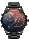 Стильные мужские наручные часы брендовой марки DIESEL из коллекции Little Daddy. Кварцевый механизм хронографа. Точность хода не хуже -10 +20 сек./в месяц. Функция нескольких часовых поясов и необычный дизайн - часы для молодого путешественника. Квадратная апертура даты. Дисковое отображение второго часового пояса. Центральная секундная стрелка отсутствует. • Минеральное стекло устойчивое к возникновению царапин. • Корпус из высококачественной нержавеющей стали со стойким PVD покрытием. • Водозащита до 3 АТМ. • Размер корпуса 55х57мм, толщина 14мм.