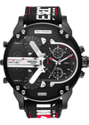 Функции нескольких часовых поясов и хронографа - часы для молодого, стильного и уверенного в себе путешественника. Эффектные многофункциональные часы Mr. Daddy 2.0. Часы-хронограф с секундомером на основном циферблате. 12-ти и 24-х часовой формат времени. Счетчики на 60 секунд и 30 минут. Четыре механизма, на двух из которых указатели часов и минут в виде вращающихся дисков, на третьем - на вращающемся диске указатель секунд. Четыре часовых пояса. Завинчивающаяся задняя крышка. Нейлоновый ремешок с надписью Diesel и классической пряжкой.