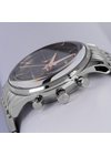 Кварцевый механизм хронографа серии 1-2163 установлен в классический круглый корпус диаметром 40 мм, сделанный из нержавеющей стали. Особенность модели — выпуклое минеральное стекло, еще одна отсылка к стилю ретро. На темно-сером циферблате все 6 стрелок выполняют свои функции: центральные показывают время с точностью до секунды, с помощью трех дополнительных индикаторов можно засекать время в минутах, секундах и 1/10 секунды. Окошко даты разместили на 6 часах. Браслет сделан из нержавеющей стали с удобной в использовании раскладывающейся застежкой.