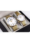 Часы обладают круглой формой и выполнены в привлекательном золотистом цвете, что добавляет им роскошного вида и делает их идеальными как для деловых встреч, так и для повседневного ношения. Белый циферблат с арабскими цифрами обеспечивает легкость чтения времени, а высококачественный кварцевый механизм гарантирует надежность и точность.
