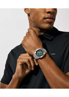 Часы-хронограф с секундомером Sage. 12-ти и 24-х часовой формат времени. Циферблат защищен минеральным стеклом. Метки в виде штрихов и арабской цифры 12. Окошко даты находится в положении между отметками 4 и 5 часов. Рифленая заводная головка с защитой. Браслет с раскладывающейся застежкой.